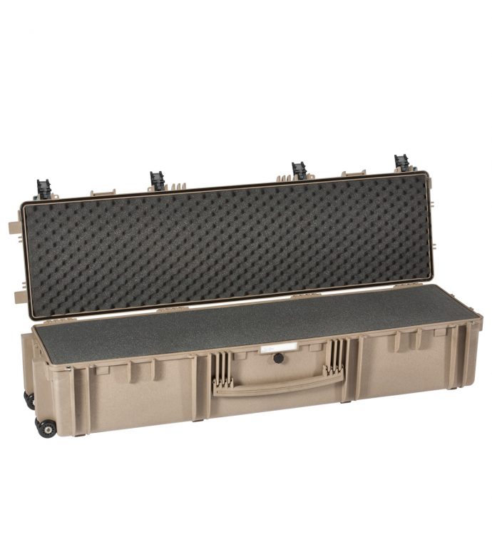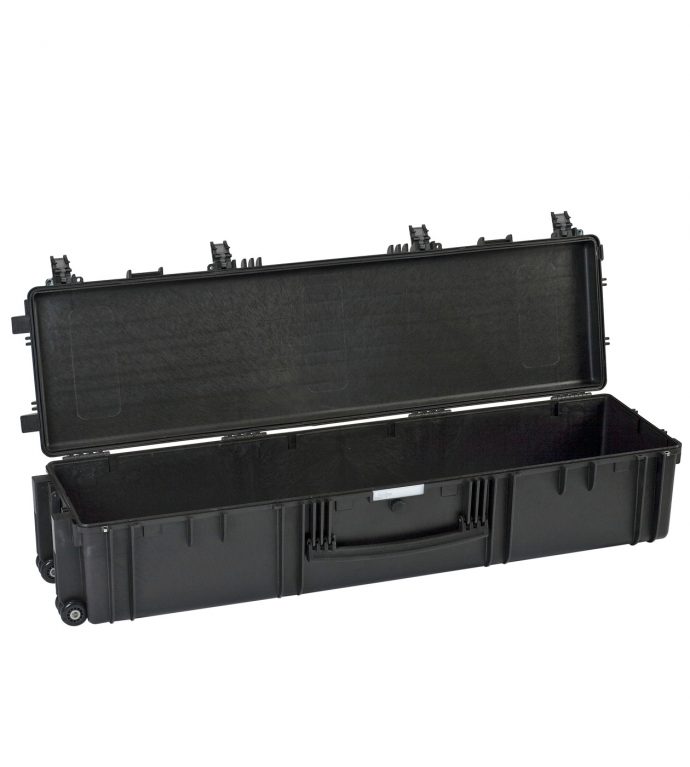 Double depth waterproof cases to accommodate lighting instrumentation and rifles. Customized high density foam inlets. Nato stock number (NSN). Six wheels and padlockable points. Wheels with bearings.