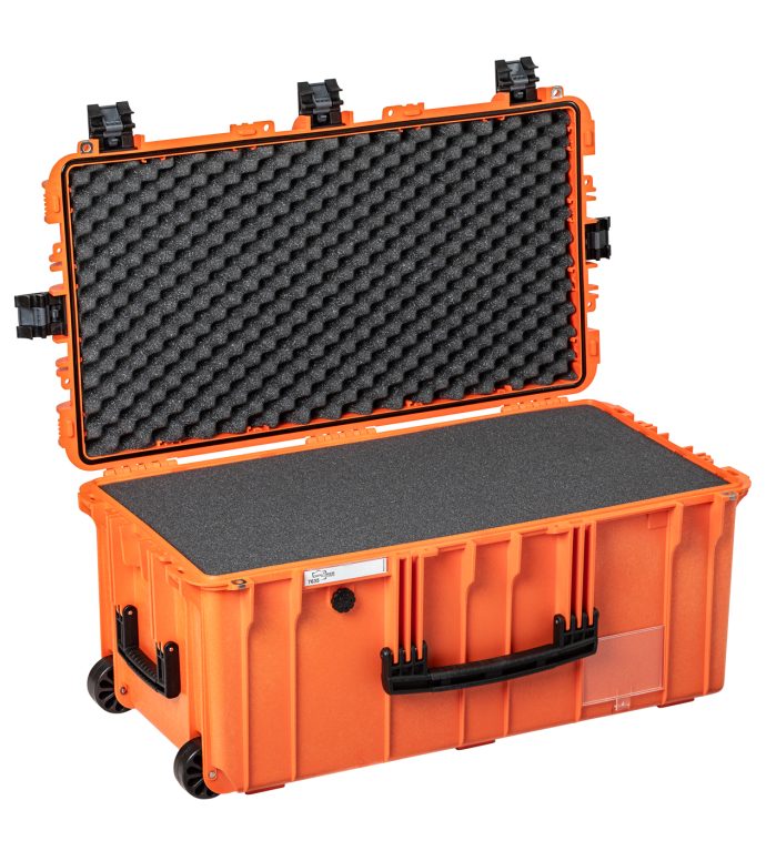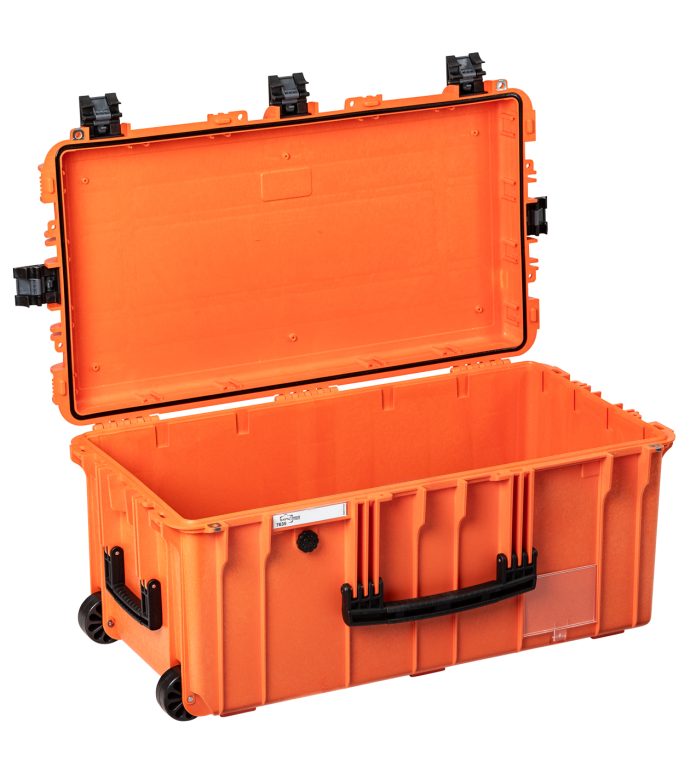 Large cases IP67 certified. Two man lift side handles and retractable handle. Self-oiling free running wheels. Four colors available and two internal standard configurations.