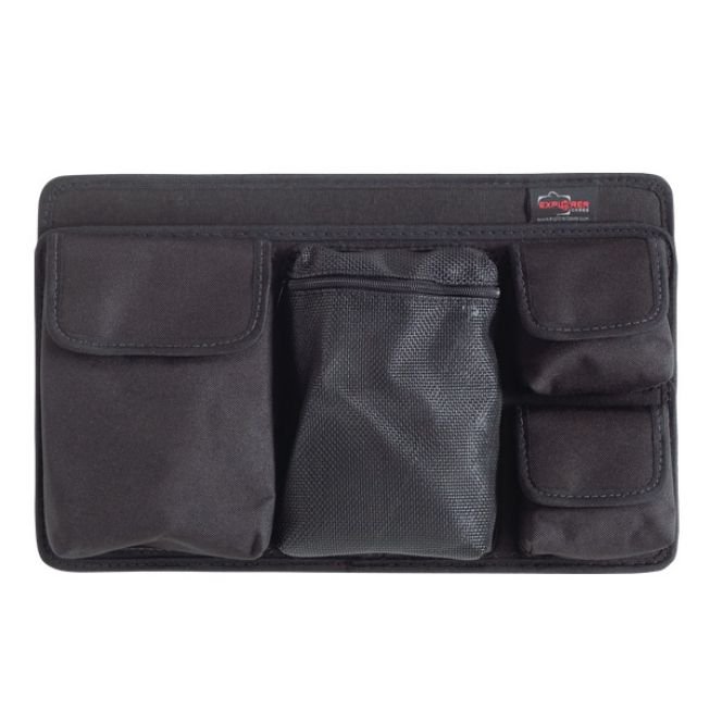 Practical and robust lid panel with pouches, ideal for small accessories and documents.