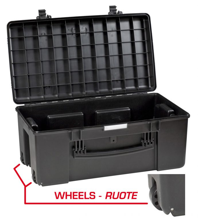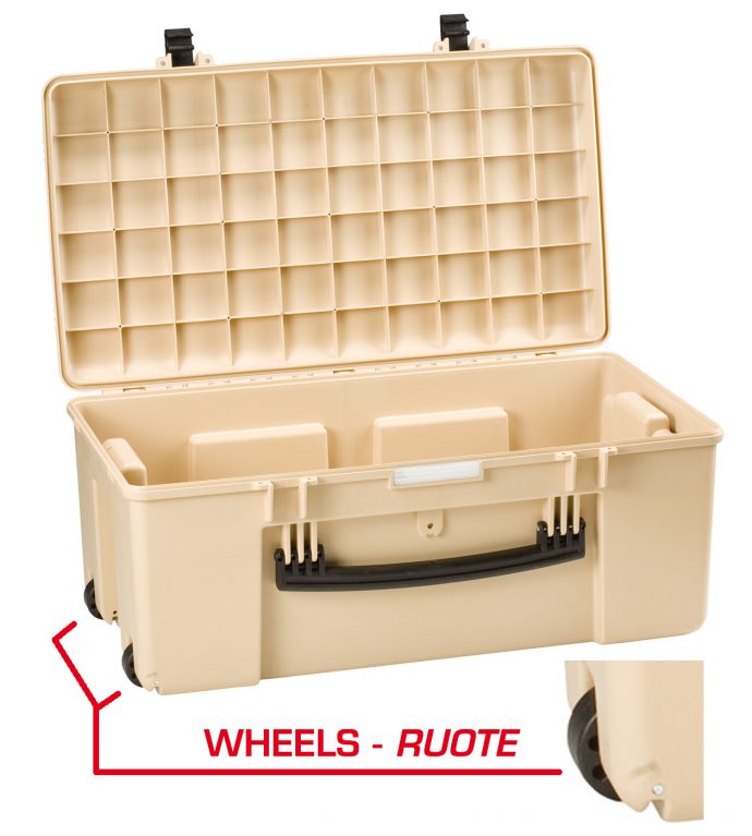 All models (except for the 1908) are internally equipped with specific slots, to apply the optional metal or plastic brackets which provide either a panel’s fixing points or a fix mechanical joint inside the case, to build more complete applications. This way the case becomes a real workstation, rather than just a carrying container. As the panel mounting brackets are mechanically fixed by screws, they can be removed when necessary. The dedicated screws allow the case to remain waterproof, and help the panels to be removed easily and quickly