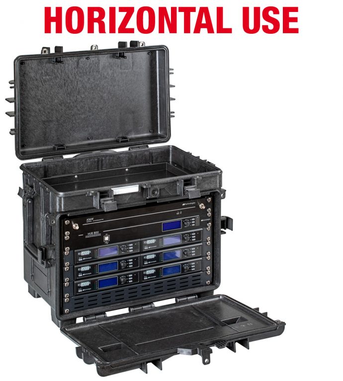 Cette valise peut loger jusqu’à 6U à l’horizontale ou jusqu’à 5U à la verticale.
