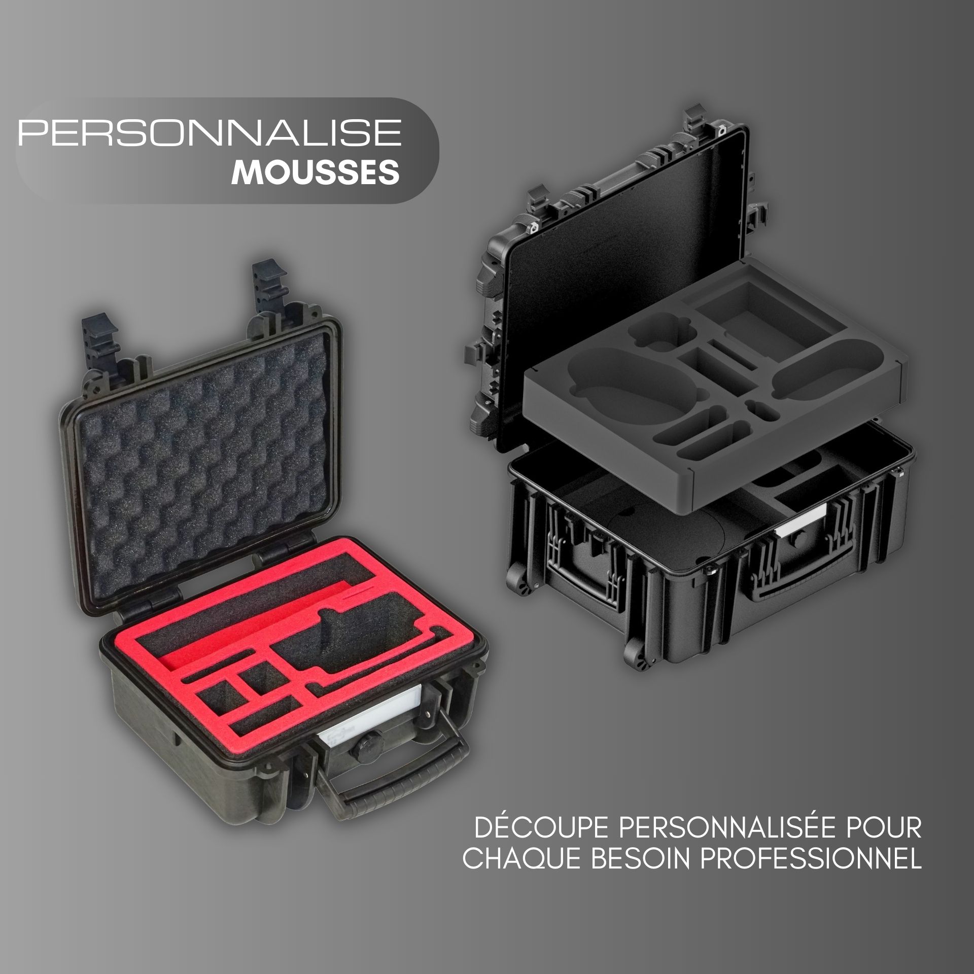 Ces accessoires complètent la personnalisation de nos mallettes à outils et de nos conteneurs haute performance, garantissant une protection maximale, une organisation optimale et une attention minutieuse aux détails pour chaque application professionnelle.