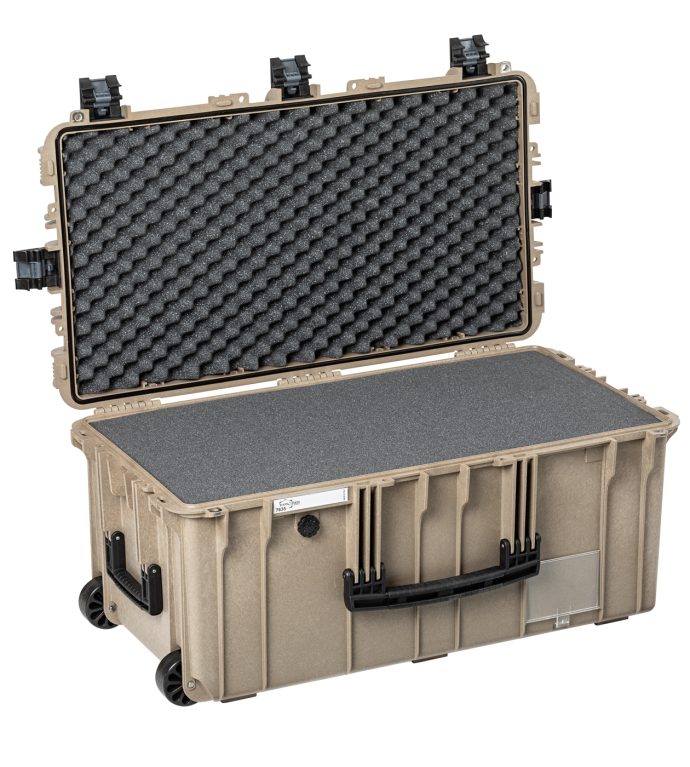 Grandi valigie certificate IP67. Maniglie laterali per il trasporto a due. Ruote autolubrificanti. Disponibili in quattro colori e due configurazioni standard.