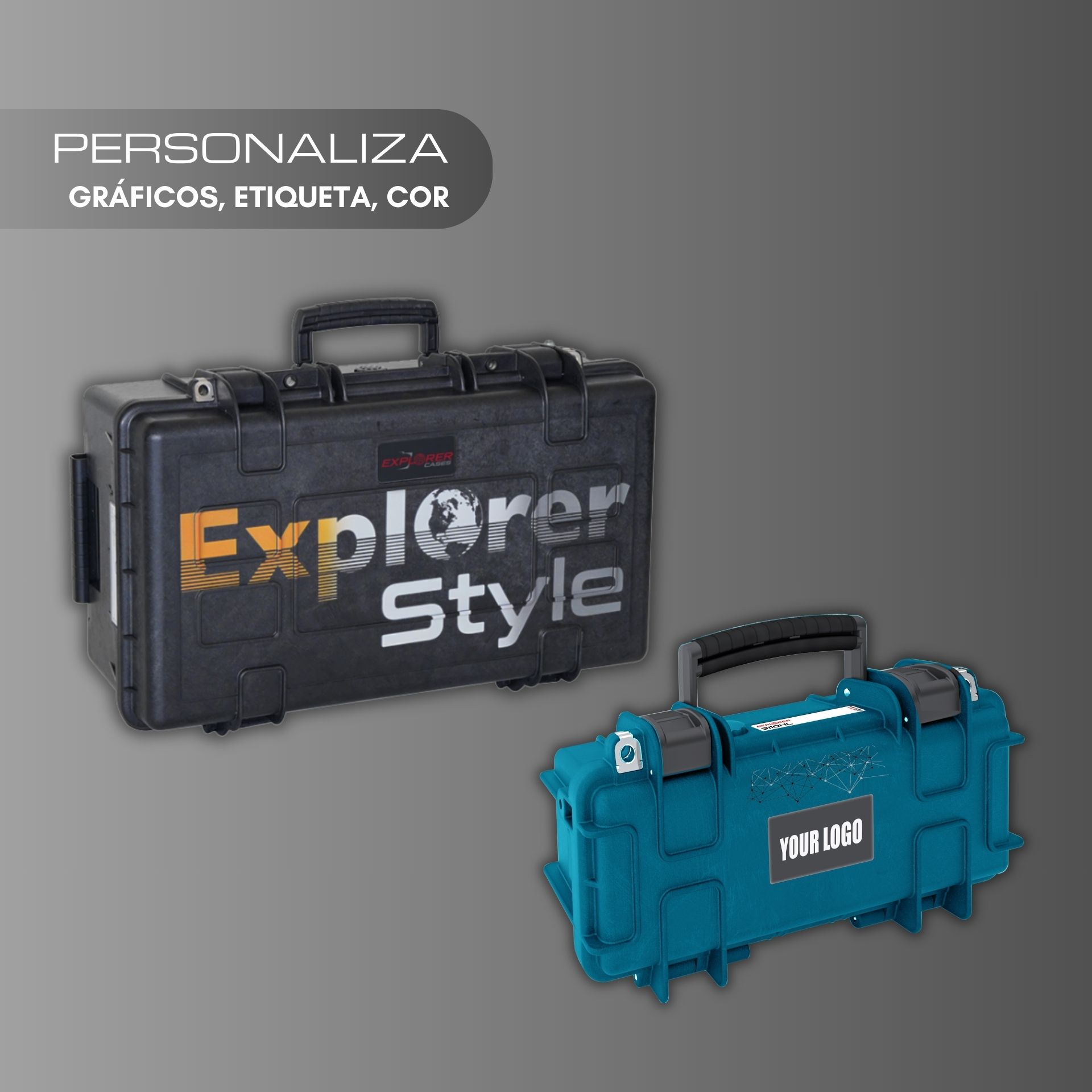 Também oferecemos personalização estética avançada através de impressão UV, permitindo aos clientes reproduzir a sua comunicação de marca diretamente nas superfícies externas das malas profissionais da sua preferência.