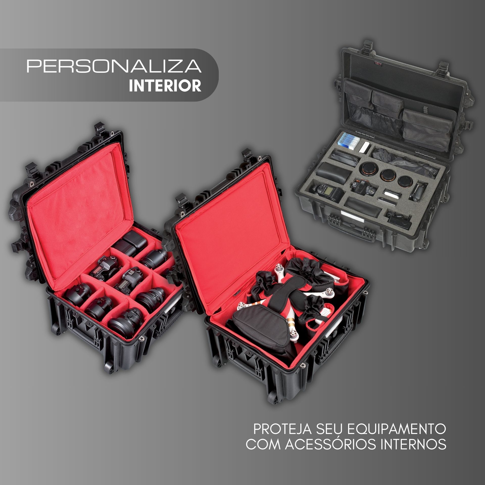 Estes acessórios completam a personalização das nossas malas técnicas e contentores de alto desempenho, garantindo máxima proteção, organização e atenção aos detalhes em todas as aplicações profissionais.